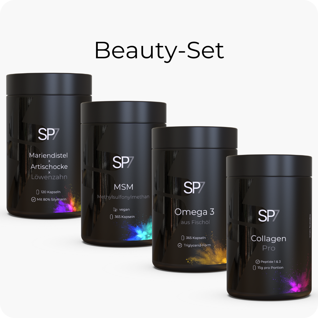 Alle SP7 Produkte sind vegan bis auf Collagen Pro, Schwarzkümmelöl Kapseln und Omega 3 Kapseln.